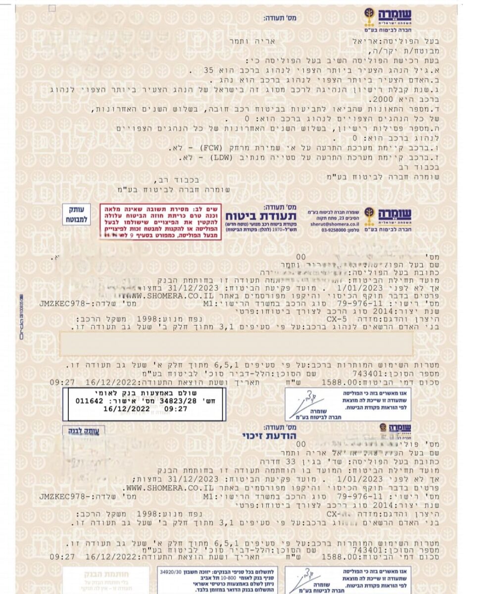 נמרוד היה במקום עם הילדים  וביקש מבעל הקטנוע שלא להתעכב בהחלפת פרטים והבטיח לשלוח את פוליסת הביטוח בשעות הקרובות לאחר מספר רב של טלפונים והודעות בסוף שלח נמרוד פוליסת ביטוח השייכת לאדם בשם אריה אריאל