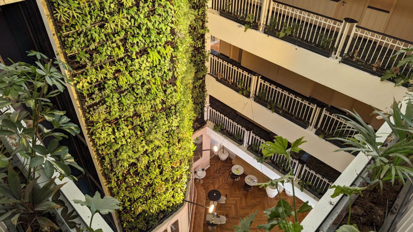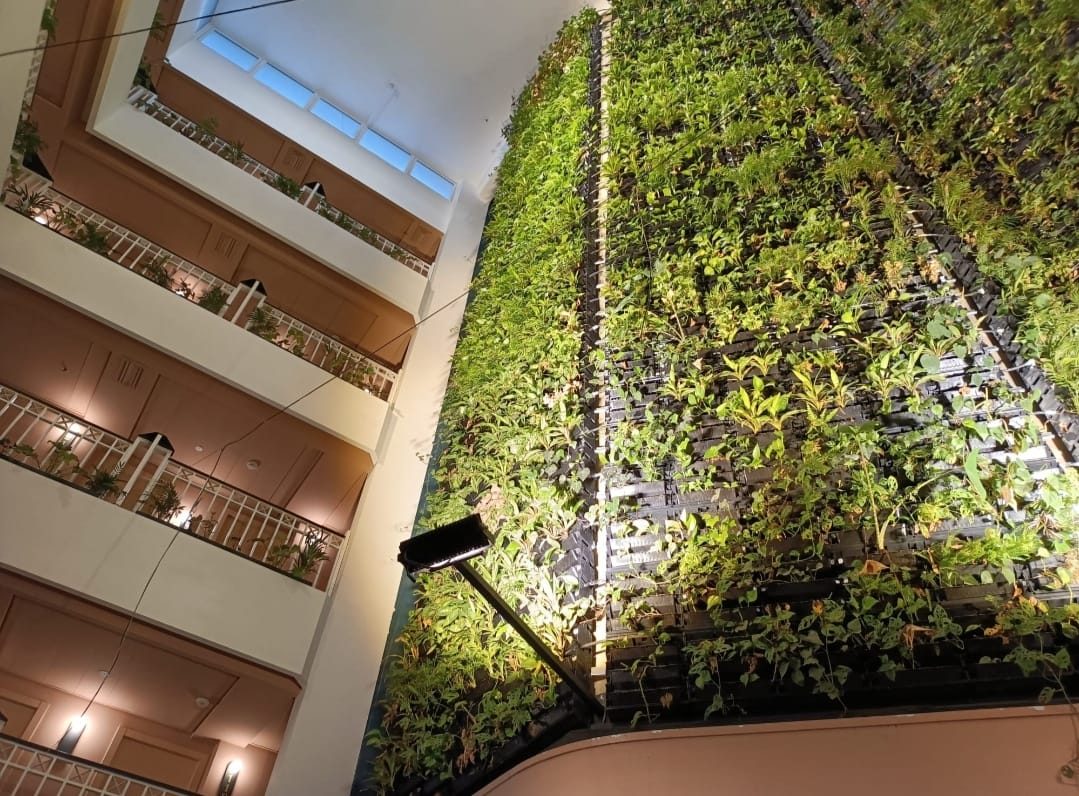 בלובי המלון עולה מן הרצפה ועד לתקרה בקומה הרביעית קיר צמחים ענקי ומרשים, ממנו ניגרים מטה עשרות סוגי